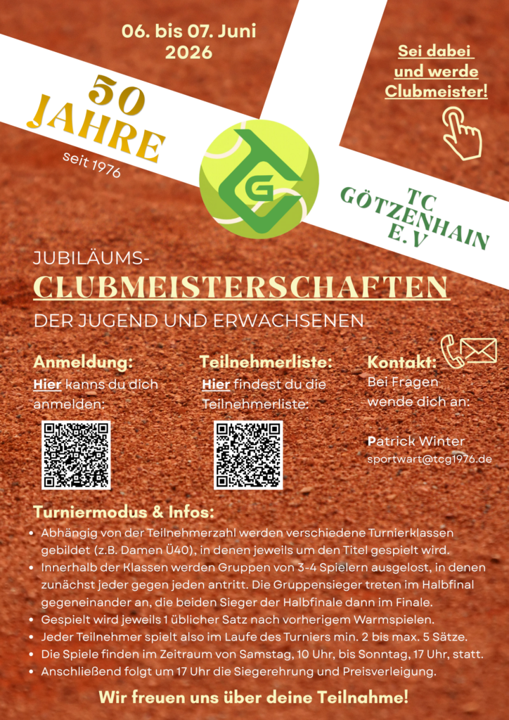 Herzlich willkommen beim Tennisverein TC Götzenhain. Wir freuen uns über Ihr Interesse am Tennissport.